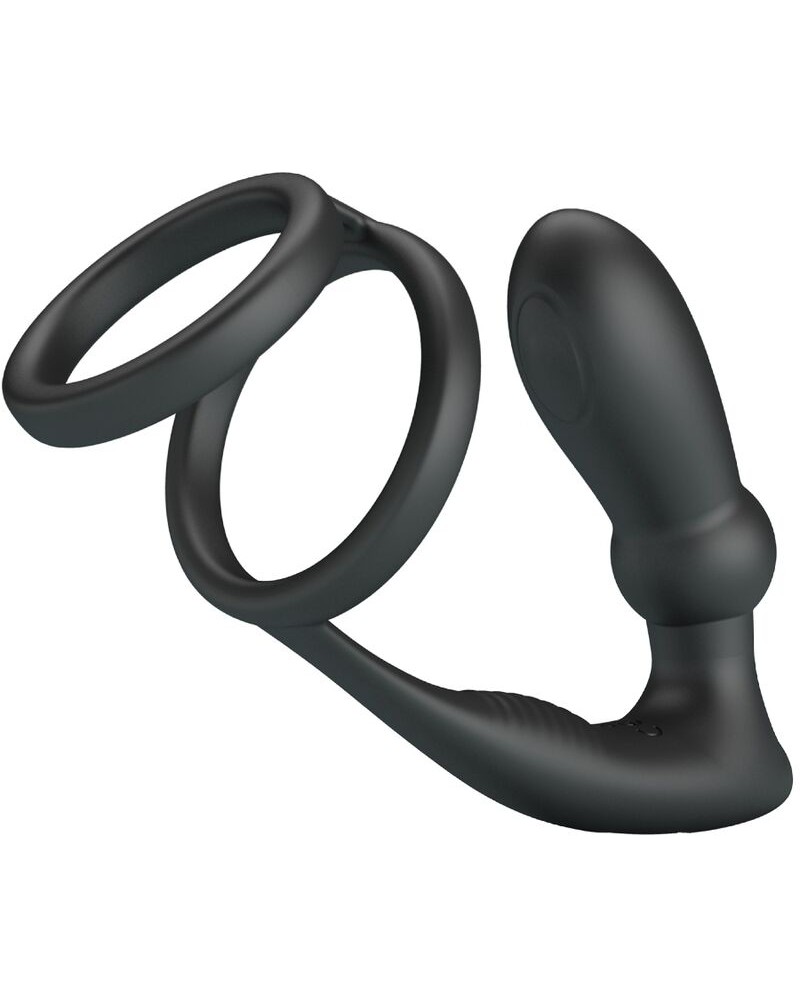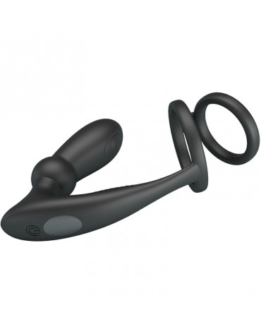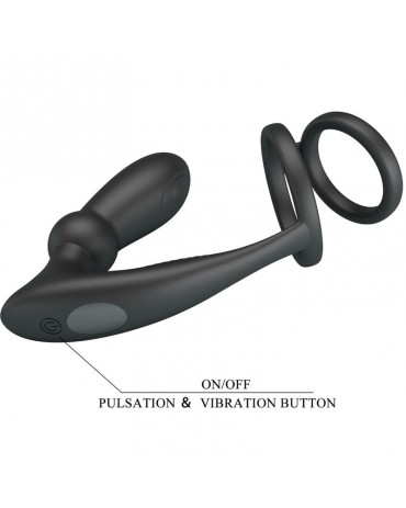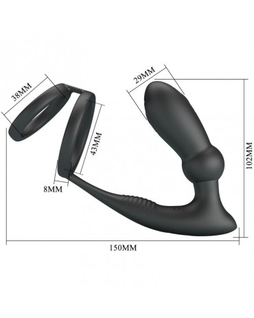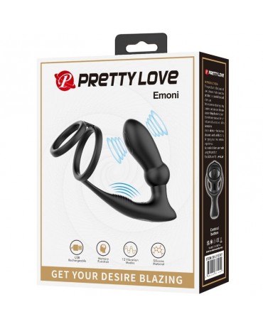 PRETTY LOVE - ANELLO PER PENE EMONI + TAPPO ANALE 12 VIBRAZIONI NERO