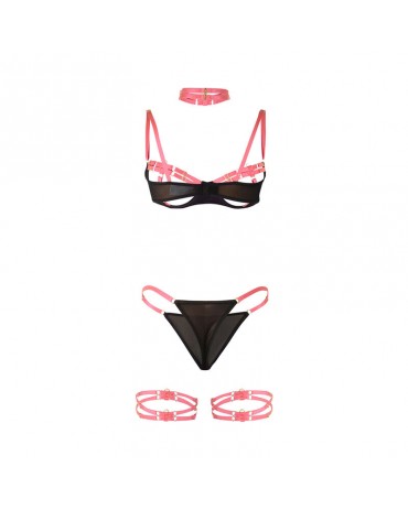 SUBBLIME - 955304 COMPLETO REGGISENO CON COLLANA E DETTAGLI GAMBA ROSA FLUO L/XL
