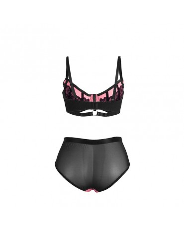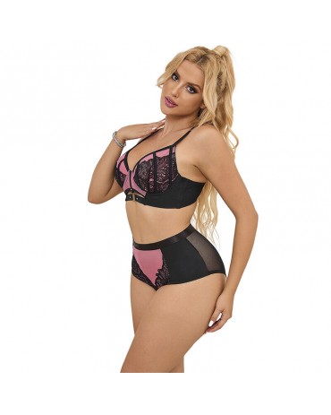 Regalati un tocco di dolcezza e sensualità con il completo intimo in pizzo rosa e rete firmato SUBBLIME. Questo set unisce la delicatezza del pizzo alla leggerezza della rete trasparente, creando un design raffinato e seducente che valorizza con eleganza la tua silhouette.