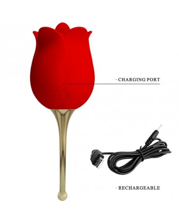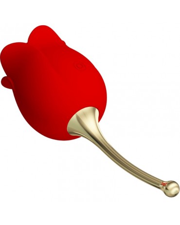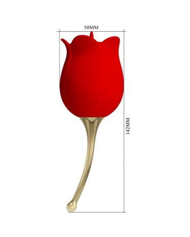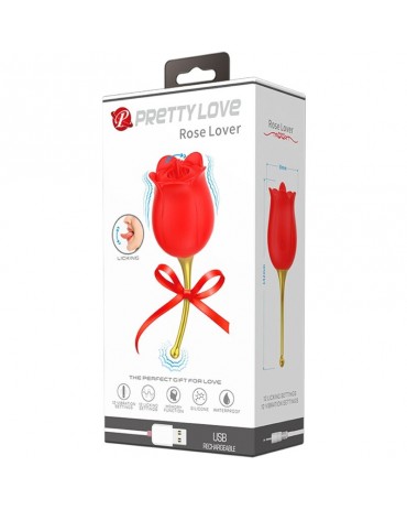 Il vibratore Pretty Love Rose Lover, a forma di rosa con lingua vibrante, è un prodotto intimo pensato per stimolare le zone erogene femminili fino a raggiungere l'orgasmo. Grazie al design realistico a forma di rosa, puoi portarlo sempre con te oppure esporlo con eleganza su un tavolo. Le delicate roselline ti permettono di vivere il piacere del sesso orale in qualsiasi momento, facilitando un orgasmo rapido e intenso. Per accenderlo, tieni premuto il pulsante di accensione per 2 secondi: la luce rossa si attiverà. Premendo nuovamente il pulsante, potrai scegliere tra 12 potenti modalità di oscillazione e vibrazione. Realizzato in silicone morbido e sicuro, è ricaricabile tramite USB e ti offre un’esperienza di piacere unica e diversa.