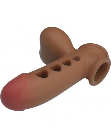 Scopri la guaina per pene con airbag brevettata di Pretty Love, pensata per donare volume extra e intensificare ogni momento intimo. Sorprendi il tuo partner e prosegui senza sosta, grazie a una resistenza prolungata. L'airbag posizionato sul glande si gonfia automaticamente grazie all'aria trasferita dall'airbag del teaser, che si comprime durante il rapporto. Indossando la cinghia attorno ai testicoli, potrai ritardare l'eiaculazione e raggiungere un picco di piacere più intenso e duraturo di quanto tu abbia mai immaginato.
