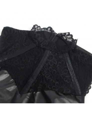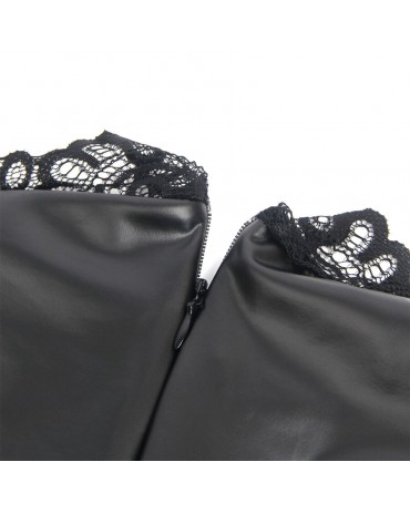 Questo spettacolare design fonde l39eleganza del pizzo floreale con l39impatto visivo della pelle sintetica (pelle PU), creando un contrasto irresistibile tra il delicato e l39audace. Il materiale effetto vinile gli conferisce un tocco seducente e ribelle, mentre i dettagli in pizzo aggiungono femminilità e raffinatezza.