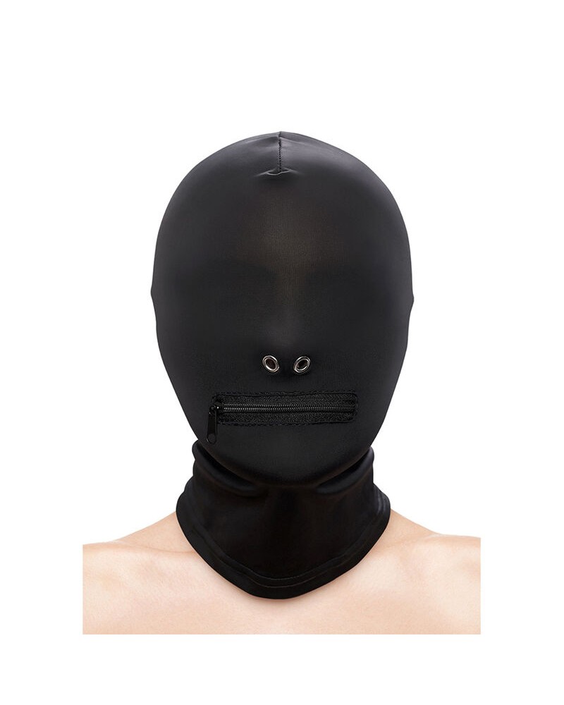 Realizzato in morbido nylon aderente e metallo anallergico senza nichel, questo seducente cappuccio copre gli occhi e presenta un'apertura per la bocca, che può essere chiusa con una pratica cerniera durante i vostri giochi.