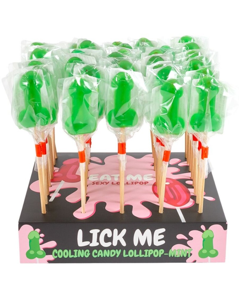 Scopri questo originale lecca-lecca a forma di pene, dal gusto fresco e deciso di menta, perfetto per rinfrescare la bocca con un tocco di allegria.