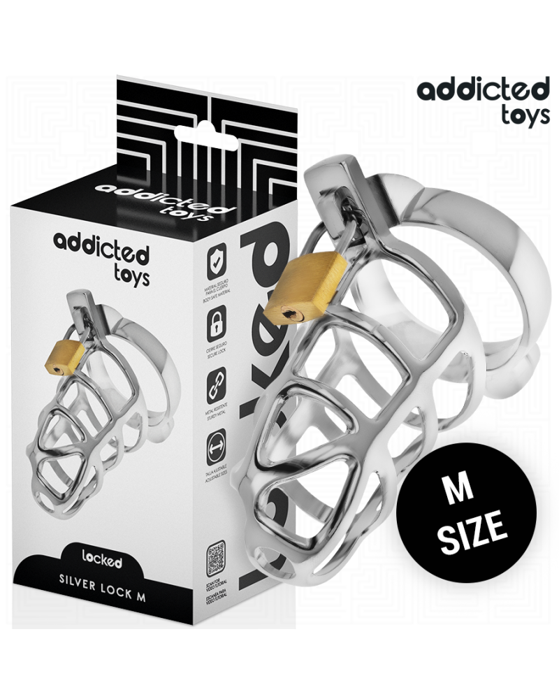 ADDICTED TOYS LOCKED - GABBIA PER PENE CON SERRATURA IN ARGENTO TAGLIA M