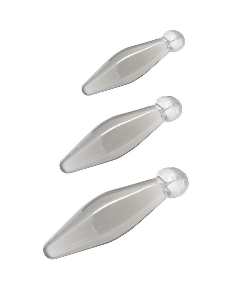 Realizzati in silicone di alta qualità, morbido al tatto, flessibile e sicuro per il corpo, questi plug presentano un39ampia base per evitare scivolamenti indesiderati e garantire una presa salda. Il set include tre diverse misure, consentendo di progredire gradualmente e adattare l39esperienza a ogni livello di comfort o desiderio. Il suo design minimalista, discreto e funzionale lo rende il complemento perfetto per il gioco da soli o in coppia.