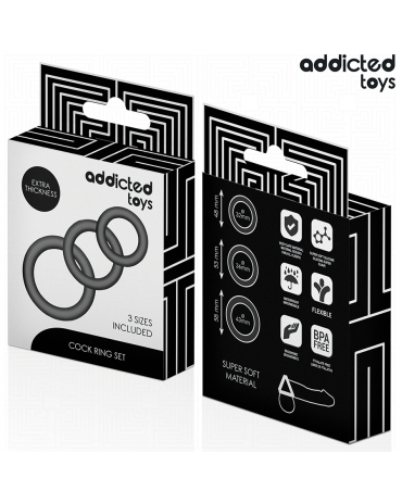 Questo set di anelli per il pene Addicted Toys include tre anelli di diverse dimensioni, progettati per fornire una stimolazione intensa e prestazioni migliorate. Ogni anello è realizzato con materiali di alta qualità per garantire comfort e durata durante l39uso.