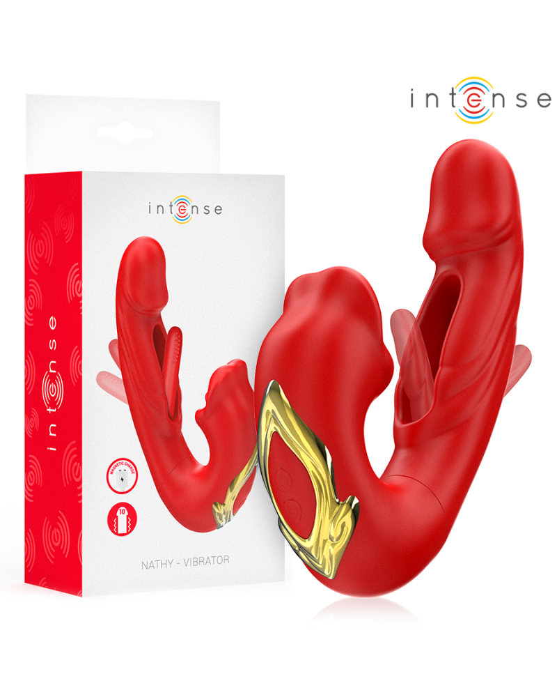 INTENSE - NATHY DOPPIO VIBRATORE CON BOCCA STIMOLANTE MULTIFUNZIONE ROSSO