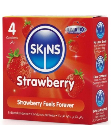 SKINS - PRESERVATIVI PREMIUM ALLA FRAGOLA CONFEZIONE DA 4
