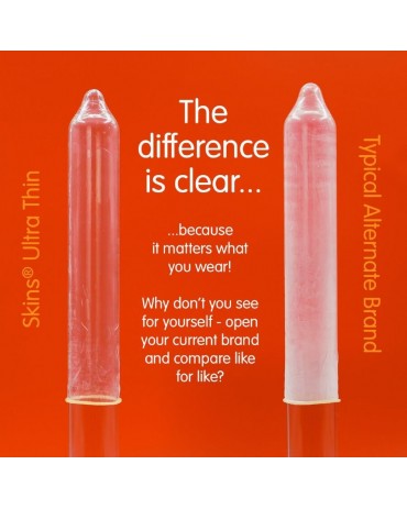 Vi presentiamo la confezione da 16 preservativi Skins Ultra Thin: un prodotto conveniente e pronto all39uso che offre fino al 33% di preservativi in più per confezione rispetto al leader di mercato. Progettata per i clienti che cercano la massima intimità con una protezione affidabile, questa confezione è ideale per i rivenditori che cercano un prodotto essenziale di alta qualità e ad alte prestazioni. I preservativi Skins Ultra Thin offrono tutti i vantaggi di Skins Natural, ma con un design ancora più sottile per una sensazione di intimità ancora più intensa. Realizzati in lattice naturale di alta qualità, offrono resistenza, trasparenza e una sensazione di seconda pelle, rendendoli la scelta ideale per chi dà priorità alla sensazione. Sentiti ancora più vicino al tuo partner con il preservativo Skins Ultra Thin, resistente ma incredibilmente sottile. Con tutte le caratteristiche di Skins Natural, ma ancora più sottile, indossare un Skins Ultra Thin è come indossare una seconda pelle.