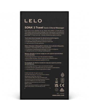 SONA™ 2 Travel è la versione compatta del nostro best-seller SONA™ 2. È stato sviluppato per migliorare l39esperienza intima dell39utente con il suo design elegante, discreto e compatto. Utilizza l39esclusiva tecnologia SenSonic™ di LELO, che offre al clitoride una potente stimolazione con onde sonore per farti sentire incredibilmente soddisfatto. SONA™ 2 Travel è il compagno perfetto per coloro che cercano il piacere nei loro molteplici viaggi, poiché consente di accedere facilmente all39orgasmo in ogni momento.