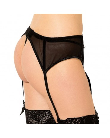 QUEEN LINGERIE - PERIZOMA CON GIARRETTIERA IN PIZZO NERO S/M