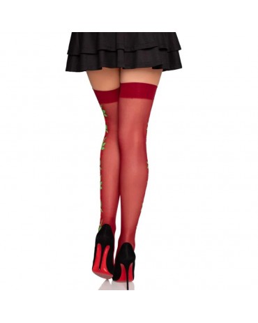 LEG AVENUE - CALZE CON CINTURA GIARRETTIERA 1957 CON FIORI ROSSI - TAGLIA UNICA