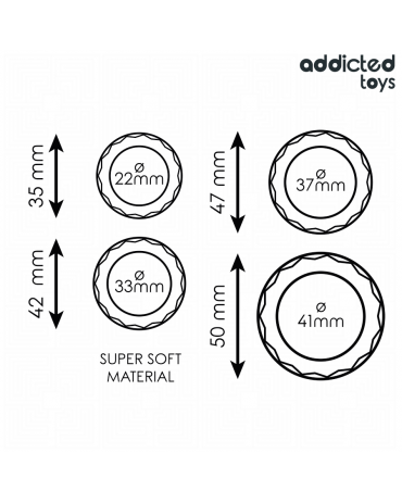 Aumenta il piacere e prolunga l39intensità con il set di anelli per pene testurizzati Addicted Toys , una collezione progettata per migliorare la qualità dell39erezione, aumentare la sensibilità e introdurre nuove sensazioni durante i momenti intimi. Realizzati in silicone ultra morbido di alta qualità, questi anelli offrono una consistenza vellutata ed elastica, estremamente piacevole al tatto. Il materiale è sicuro per il corpo, privo di ftalati e completamente flessibile, garantendo un39esperienza confortevole e salutare anche durante un uso prolungato.