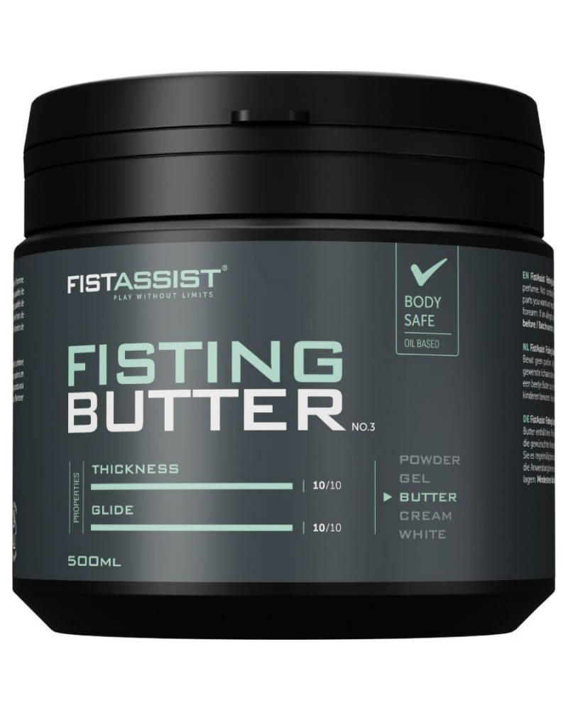 Il burro per fisting Fist Assist è un burro lubrificante a base di olio che si scioglie a contatto con la pelle, offrendo la scorrevolezza più densa, liscia e ammortizzata dell39intera gamma. La sua texture ricca e avvolgente crea un39esperienza ultra-liscia, ideale per un gioco intenso e una connessione profonda. Progettato per chi cerca il massimo del comfort e delle prestazioni, offre una scorrevolezza continua e controllata, come il sesso al rallentatore in un barattolo.