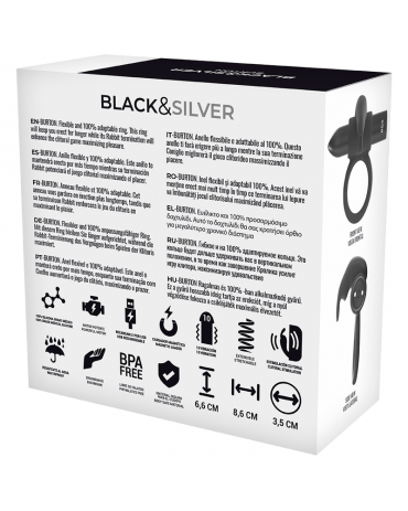 Ecco un regalo particolarmente zuccherato per il tuo migliore amico! Questo meraviglioso stimolatore maschile si maschera da anello per il pene e vuole addolcire le ore del tuo cuore. Con l39Anello BlackSilver potrai potenziare al meglio la tua lancia del piacere e regalare a te stesso e alla persona amata stimoli di formicolio. Con la sua superficie liscia come la seta e di colore nero intenso, realizzata in silicone medico, il BlackSilver ti mette in un39estasi sensuale non appena lo indossi. L39anello si allunga piacevolmente e quindi si adatta a tutte le taglie, proprio per accogliere e donare piacere al vostro pene.