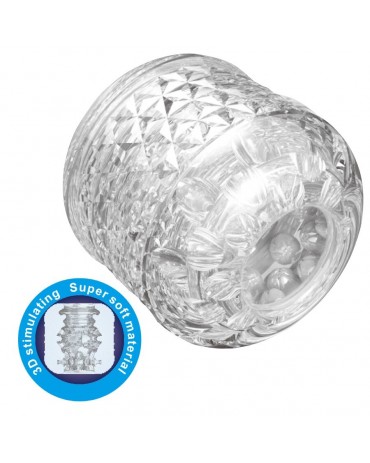 Elegante stimolatore manuale in colore trasparente di qualità ineguagliabile, in grado di offrire una stimolazione del pene altamente irresistibile.