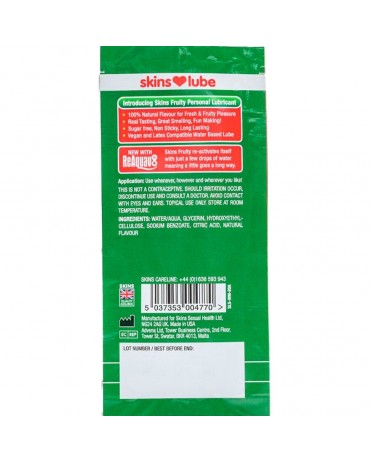 Rimane una domanda... Quanta fame hai?! (o) Come lo prendi? Un39oasi di piaceri rinfrescanti, i lubrificanti a base d39acqua Skins Fruity hanno un autentico sapore di frutta e non lasciano retrogusti, a differenza di altri lubrificanti aromatizzati. Ricchi di bontà fruttata, sono disponibili in tre deliziosi gusti: Fragola Sensuale, Mango Succoso e Frutto della Passione e Anguria Rinfrescante.