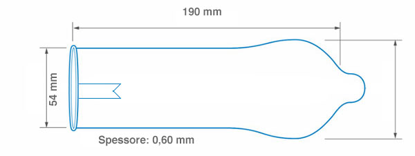 Preservativi in lattice di gomma naturale con larghezza nominale di 54 mm. Anatomici, comodi e di qualità.
