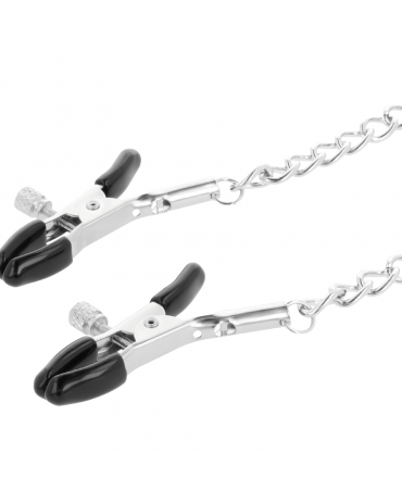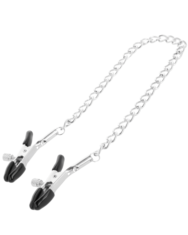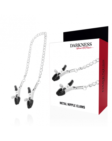 Scopri i morsetti per capezzoli a catena di Darkness! Unisex e semplicissimi da usare, questi morsetti sono realizzati in acciaio inossidabile e alluminio, completamente privi di nichel per garantire comfort e sicurezza. Perfetti sia per esplorare i tuoi desideri più nascosti sia come accessorio per aggiungere stimolazione durante l’intimità con il tuo partner.