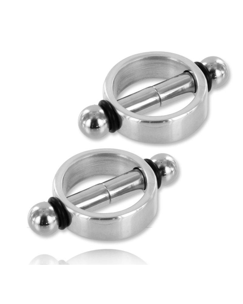 Questi morsetti magnetici per capezzoli sono ideali per donne e uomini che vogliono aggiungere un tocco di piacere intenso durante il bondage e i giochi fetish (BDSM). Offrono una stimolazione unica, combinando un delicato dolore con una sensazione magnetica avvolgente. L'anello in alluminio è dotato di due aste magnetiche, facilmente separabili e regolabili, per assicurare una presa salda e confortevole sui capezzoli.