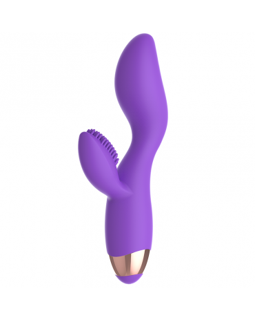 Womanvibe Donna è un vibratore a doppio motore che regala una stimolazione intensa in modo elegante e piacevole. Perfetto per una masturbazione che ti porta al massimo piacere, il suo design raffinato in color Lilla e Oro nasconde due motori potenti: uno sulla testa e l'altro sul clitoride. Lo stimolatore clitorideo presenta punte in silicone rialzate che amplificano la forza delle vibrazioni. Realizzato in silicone privo di ftalati, sicuro al 100% per la tua pelle, e con dettagli in ABS, è completamente flessibile e incredibilmente piacevole al tatto!