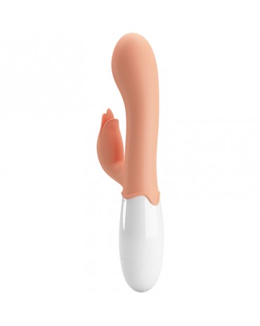 Vibratore in TPR color carne dotato di due motori: uno posizionato sulla punta dell'asta e l'altro all'interno dello stimolatore clitorideo a forma di fiore. Questo vibratore è l'ideale per una stimolazione simultanea e intensa, grazie alla sua ampia punta progettata per il punto G e al potente stimolatore clitorideo che amplificano il piacere. La sua flessibilità garantisce un contatto perfetto con il punto G o il clitoride, adattandosi a ogni movimento. I due motori offrono 30 diverse modalità di vibrazione, facilmente selezionabili con la semplice pressione di un pulsante.