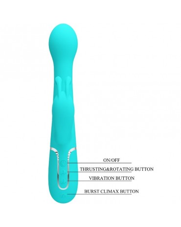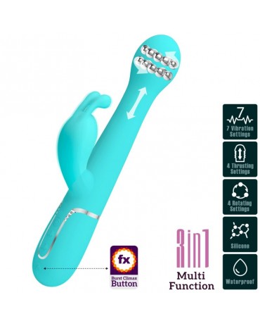 PRETTY LOVE - VIBRATORE DEJON RABBIT 3 IN 1 MULTIFUNZIONE VERDE ACQUA
